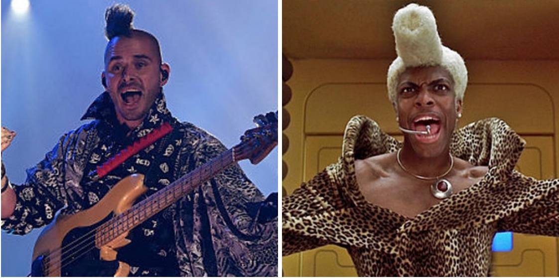 用自己的发型完成了实力模仿的还有当晚的表演嘉宾Cole Whittle,所以是在向第五元素致敬吗?▼