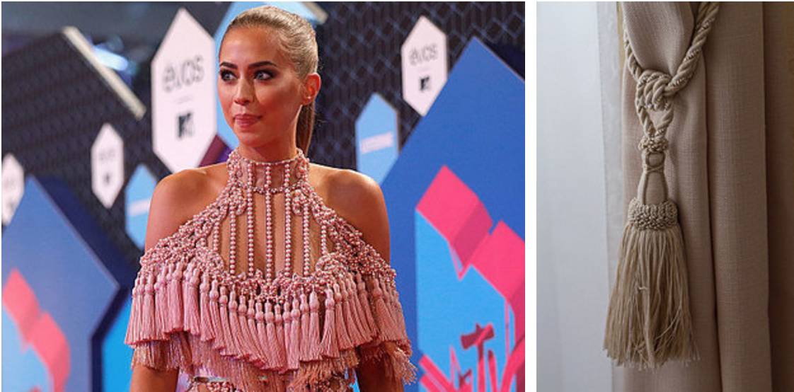 另外还有网友觉得她大概是把一千个挂窗帘用的流苏穿在了身上▼