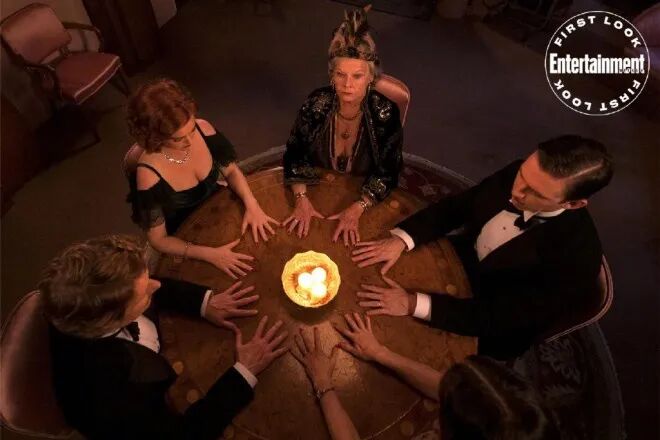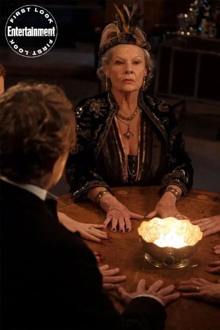从剧照来看,新版《欢乐的精灵》的主角着装颇为复古,似乎在向前作致敬。朱迪·丹奇饰演一位“神秘主义者”,她帮助深受写作障碍困扰的畅销犯罪小说家与自己的亡妻“沟通”。