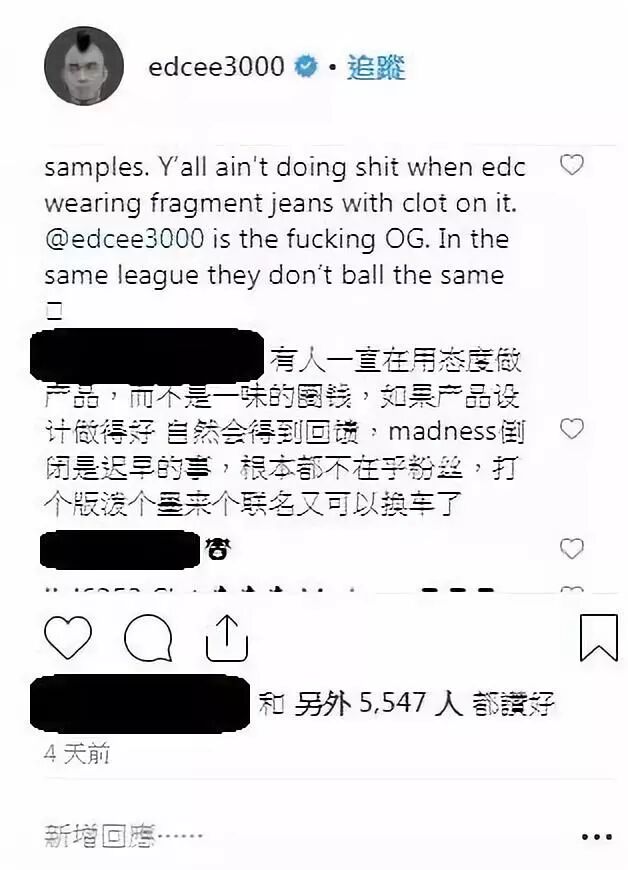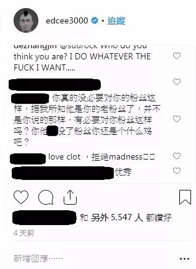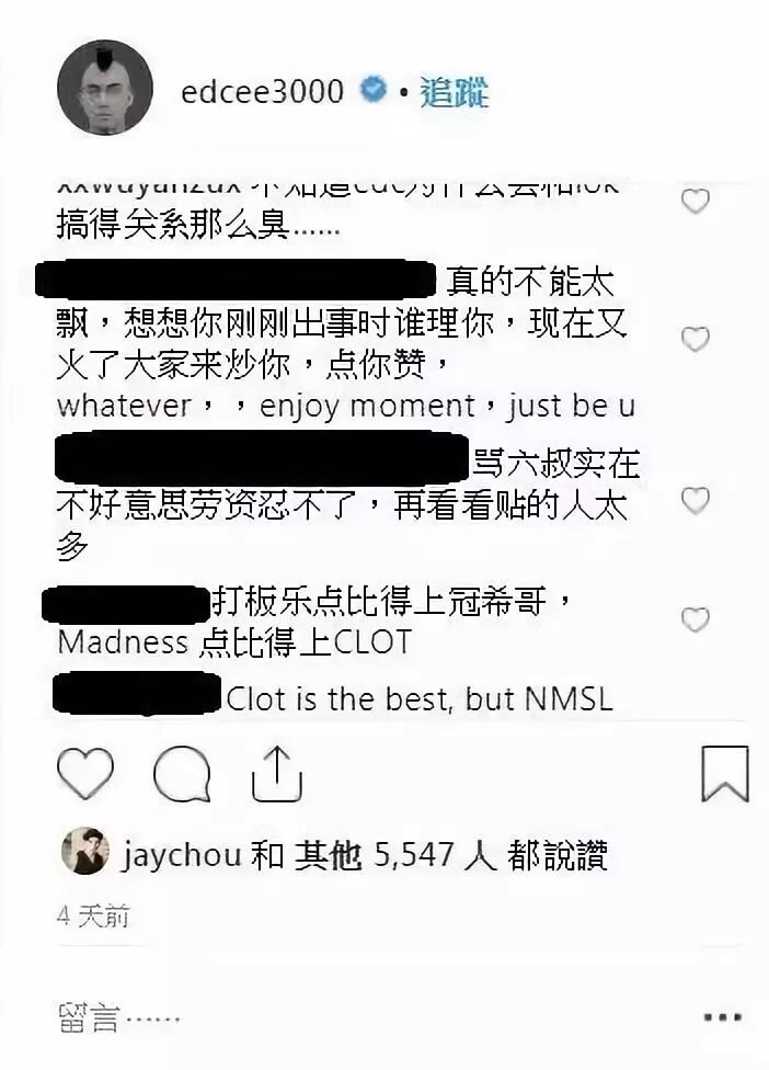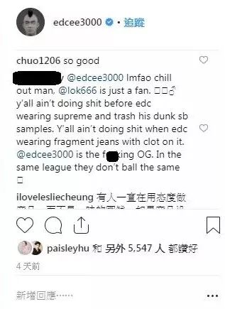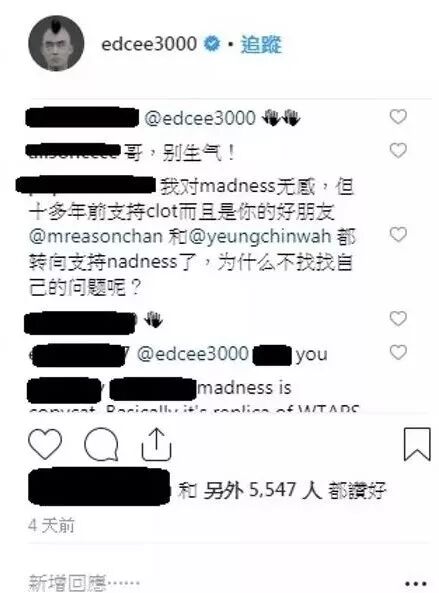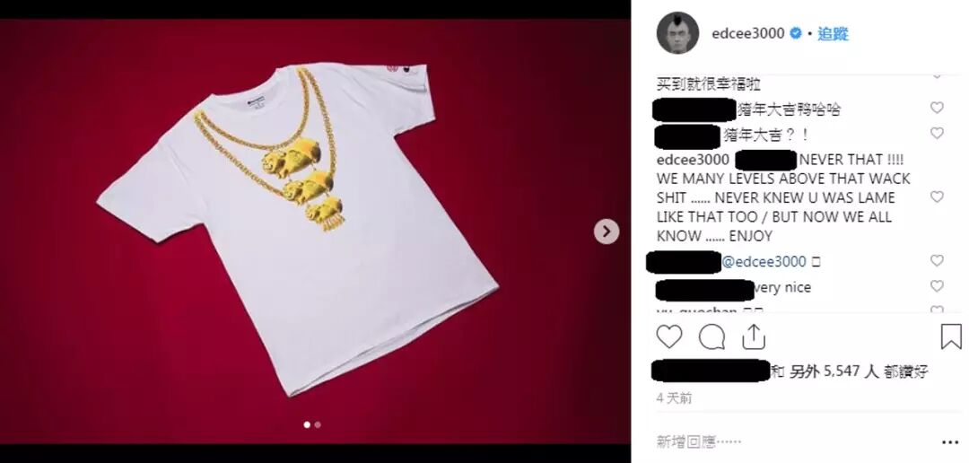 起因是陈冠希在发布了自己品牌的最新T-shirt,一条留言却触动了Edison的神经:
