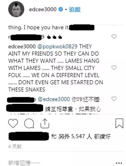 至于和陈奕迅杨千嬅有什么关系呢?因为又有一条留言惹到了Edison: