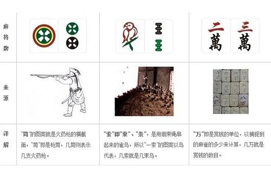 “麻将源于中国,属于世界”,麻将又称麻雀,起源众说纷纭,麻雀牌这种说法是最主流的麻将起源的说法。麻雀牌起源说自然跟麻将息息相关,有关资料记载,在江苏太仓市曾有皇家的大粮仓,粮多自然雀患频生,每年因雀患而损失了不少粮食。管理粮仓的官吏为了奖励捕雀护粮者,便以竹制的筹牌记录捕雀数目,凭此发放酬金。其中“筒”代表了火枪,“索”代表了麻雀,所以一索是一只麻雀,“万”代表了奖励的数目,“风”代表了天气,这种筹牌上刻着各种符号和数字,既可观赏,又可游戏,也可作兑换奖金的凭证。而在太仓方言中,“麻雀儿”和“麻将”读音较近。