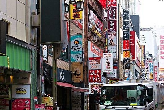 东京街头的各个电车站附近,除了居酒屋、漫画店和游戏室外,麻将馆也是常见的活动场馆之一。42岁的佐藤君一般会在周末前往麻将室打上几个小时。说几个小时,是因为麻将室按小时收费,通常每人一个小时350日元至1000日元不等。图为与日本红灯区并存的麻将馆。