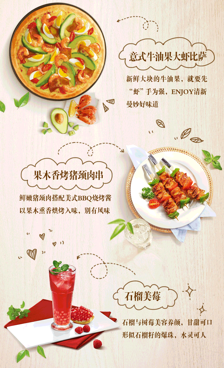 “快乐因分享而加倍,悲伤因分享而减半”。看完广告以后,还真有种冲动想约朋友出来次比萨了有没有!听说这周一必胜客推出了牛油果大虾比萨,约不约?