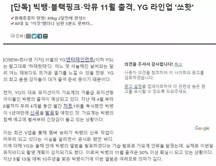 《BIGBANG,BLACKPINK,AKMU,11月即将出击,YG 艺人‘so hot’》