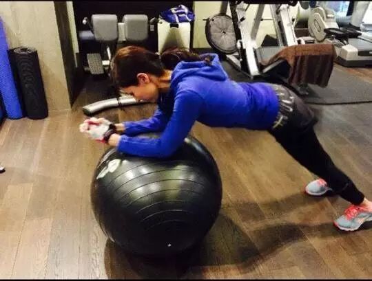 利用瑜伽球平板支撑,虽然动作不是很标准,但是对腹部的深层肌肉达到很好的锻炼(腹横肌)。办公室的上班族和啤酒肚人员,除了多做有氧锻炼外,腹横肌的锻炼是少不了的。