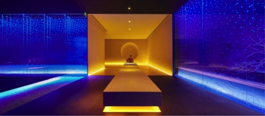 六零后设计师代表孙天文在“雪月花日本料理”的项目中,用雕刻樱花的超白玻璃、蓝色的LED光带、全黑的寿司台背景,构筑出“鱼跃在花见,花开在眼前”梦幻诗意的空间意蕴,以深厚的文化底蕴和精湛的设计手段,实现了“用刹那,问候浮生”的设计意境升华。