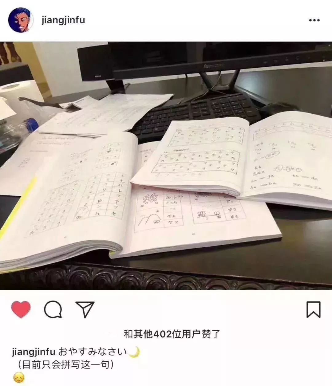 眼尖的网友发现这分明是在学五十音嘛,蒋劲夫也回复称自己的日语并不好,而来日本学习生活的话语言是一道坎,所以才有了后来他去日本语言学校学习的事儿了~