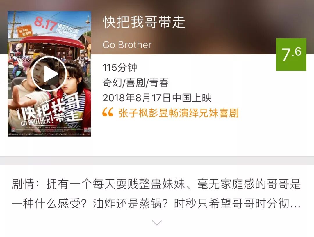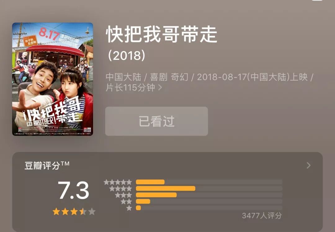 这部电影就是《快把我哥带走》,它不仅以亲子的题材成为七夕清流,更以爆表的口碑成为了首屈一指的黑马。