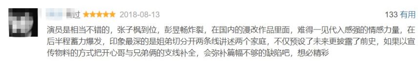 张子枫演技不必多说,素有小戏骨之称,9岁时就凭借《唐山大地震》拿了金鸡百花新人奖,彭昱畅更是因为《演员的诞生》受到多方认可。二位都是演技在线的小鲜肉,导演郑芬芬还曾执导过电影《听说》。这部电影是感动承接的沿袭,也是对漫画作品的还原,更是演员飙戏的过瘾体验,尤其是张子枫,似乎承包了电影所有的泪点,简直就是“年度催泪弹”。