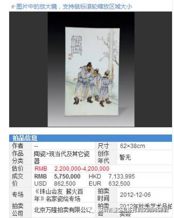 二十世纪九十年代来,瓷板画的市场价格屡屡走高,是因为这种艺术品不仅需要绘制,还要两次入火烧制,加之是瓷的质地,易发生变形、窑裂,成功率极低,所以精品很难得。其次,以本身就具平整光洁美感的瓷板作为画作载体,能显出画幅色彩鲜明、靓丽、浓烈的审美意境及独特高雅的细腻感来,上面的构图、线条、色彩等都不会走样。再者,瓷板远比纸、绢等具有更稳定的物理和化学性能,不怕潮、霉,不易变质。一旦作品完成,色彩将经久不褪,常年如新。