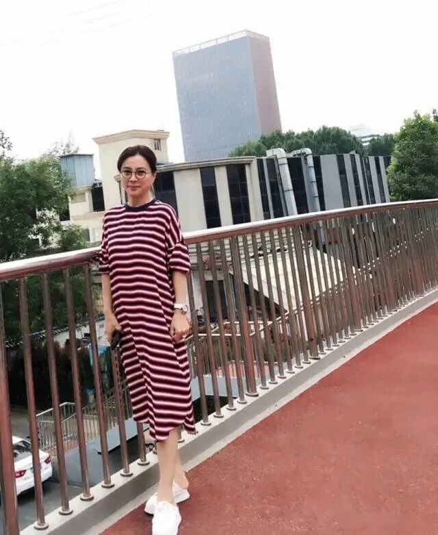 李玲玉其实是一个特别低调的女明星,脸上稍微化点淡妆感觉显得整个人的气色确实会好很多,而且起码不会显得整个人太过于憔悴,身上穿的这条裙子长度还是比较长,而且选择的是比较宽松的版型,并且上面还是条纹的设计。