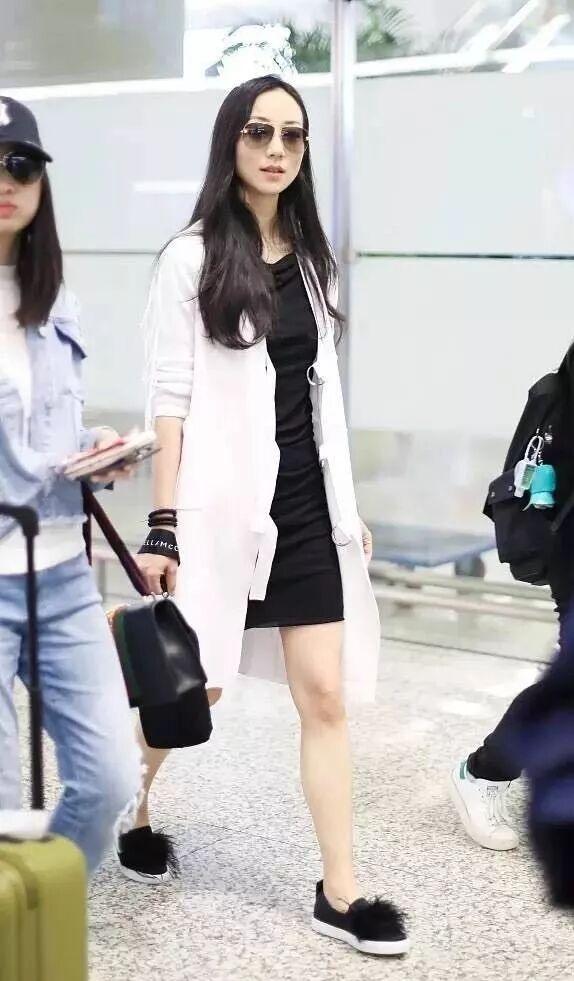 优雅型的韩雪用单调的黑白色调打造简约休闲风,不用太多亮点,一件连衣中长裙+轻薄针织衫或风衣,裙装时尚搭配完成~