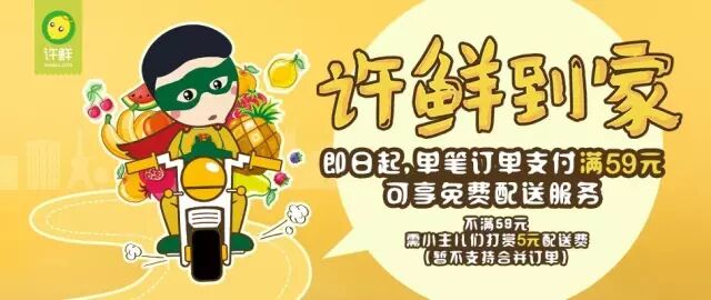 你造不?小许鲜是可以配送滴!单笔消费实付金额满59元,我们的许鲜骑侠就免费为您送货上门喔!