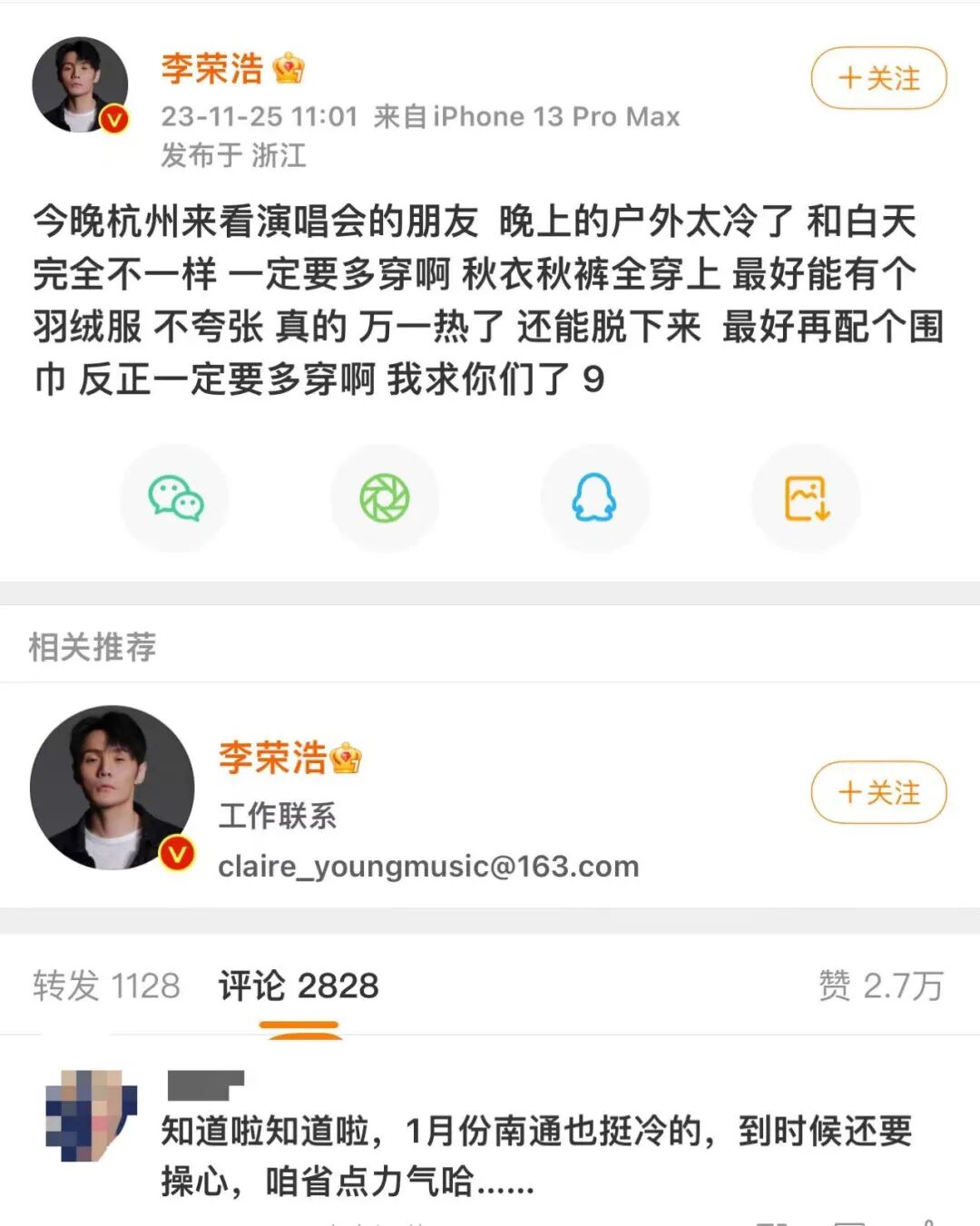 李荣浩至今一共发行了九张专辑,集合了流行、摇滚、爵士、电子等各种曲风,诞生了无数金曲《模特》《李白》《喜剧之王》《作曲家》《不将就》《麻雀》《年少有为》《乌梅子酱》……如果要罗列,他的每一首作品都可榜上有名。