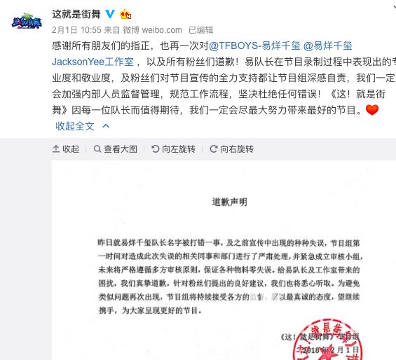 随后节目组发表声明致歉,解释了整个事情并道歉。