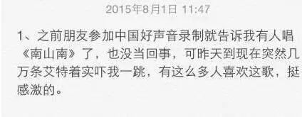 因为他俩的纠纷缘起《南山南》,缘灭《南山南》,是不是感觉有点儿像是争女人的感觉?