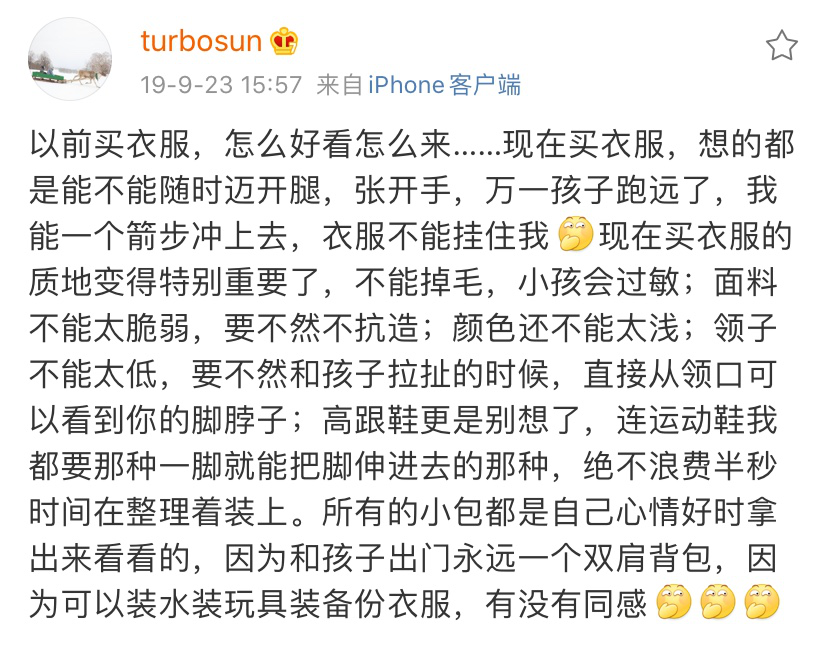 翻翻她的微博,几乎都是和孩子、生活相关的内容。