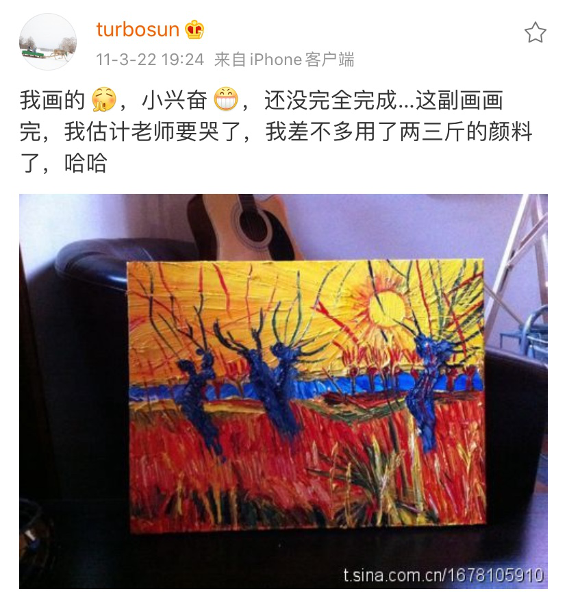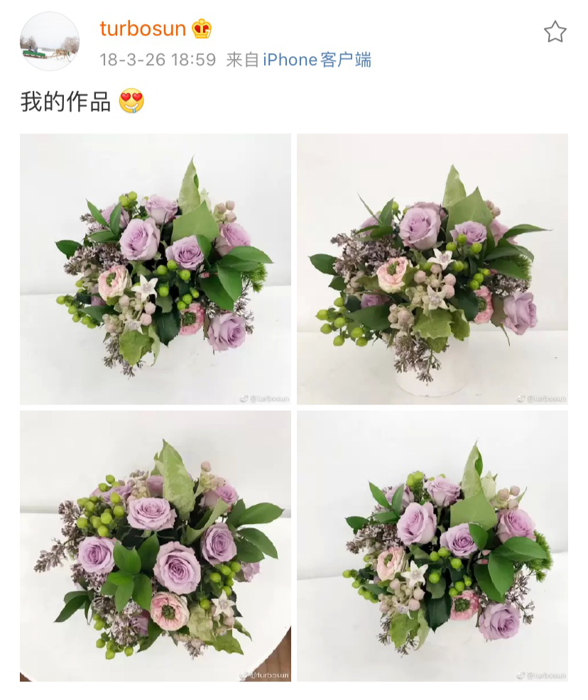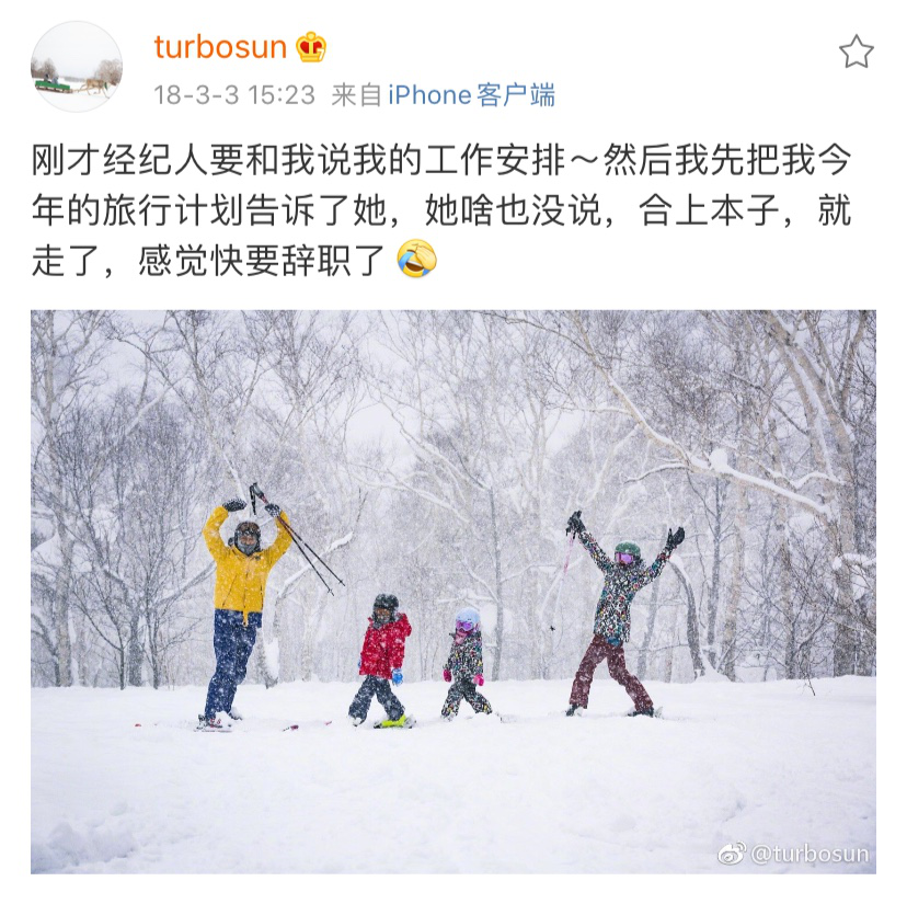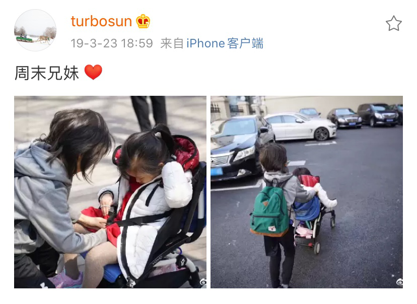 孙俪的微博名叫“turbosun”,分开来看是 turbo+她的姓缩写 sun 。