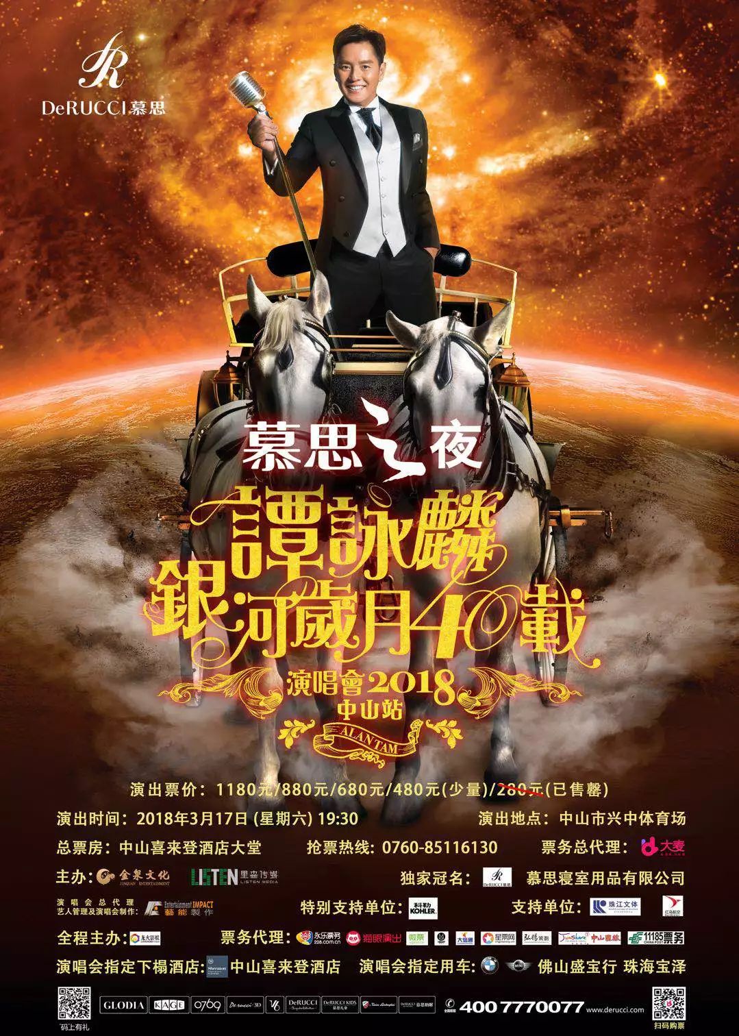 2018年2月2日,由金泉文化、里森传媒、珠江文体共同主办,慕思寝具用品有限公司独家冠名的“慕思之夜谭咏麟银河岁月 40载中国巡回演唱会 2018-中山站”新闻发布会在中山喜来登酒店盛大召开。
