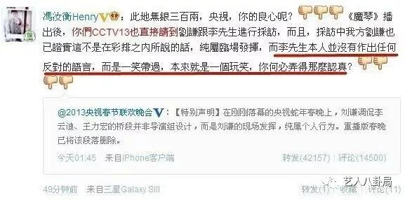 只是刘谦接的这句“找力宏”,不仅让现场观众起哄,事后更是在网上引起轩然大波。