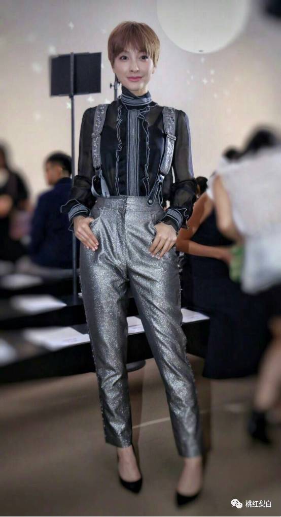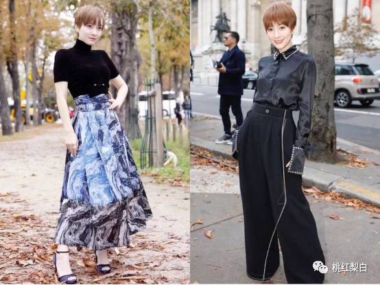 这种成套裤装造型,这段时间在女明星间,也是蛮流行的。