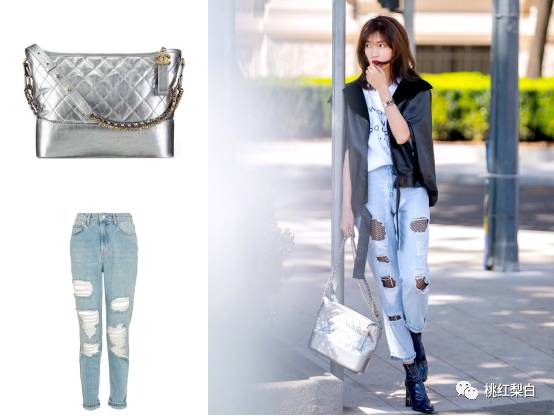 不得不说,这种法式小刘海还是挺适合江疏影的,连带她最近的穿衣风格都多变了起来。字母Logo白T+破洞牛仔裤套网袜,再来一双冬季最火的尖头靴,整身look街头感很足。