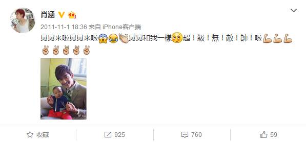 连续发了两条微博,还说下次争取教宝宝喊“舅舅”···