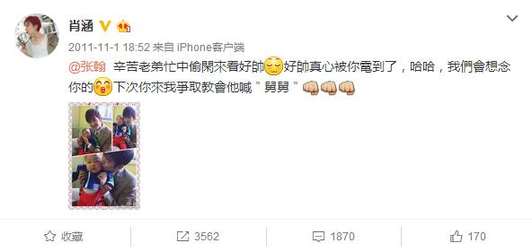 2011年时候,张翰去看她儿子的时候,肖涵还开玩笑说,舅舅来了。