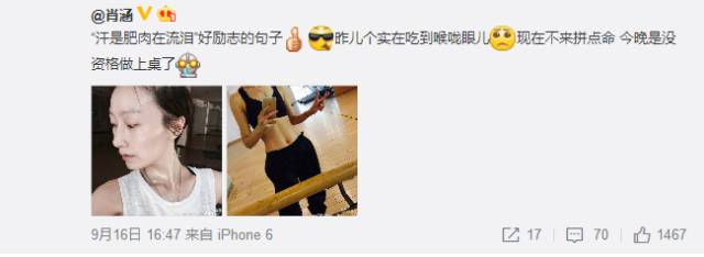 翻翻肖涵的微博,她的日常除了健身,日常生活精彩。
