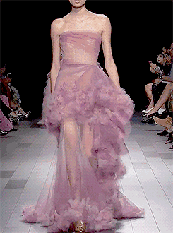 Marchesa的设计师g喜欢通过玫瑰色彩来展示自己对女性特质的看法,今天他们的开场造型就是一套经典漂亮粉红色的服装。本系列灵感来源很多,一开始是日出和从黄昏到黎明天空不同的颜色;有淡紫色、浅蓝色、腮红粉色,有时是彩虹色。除了用闪光金银线打造的迷人的希腊式单肩连衣裙,本季的氛围更像是黄金时间的安静而不是正午太阳那样热烈,色调比纽约时装周至今出现的霓虹作品更加安静。