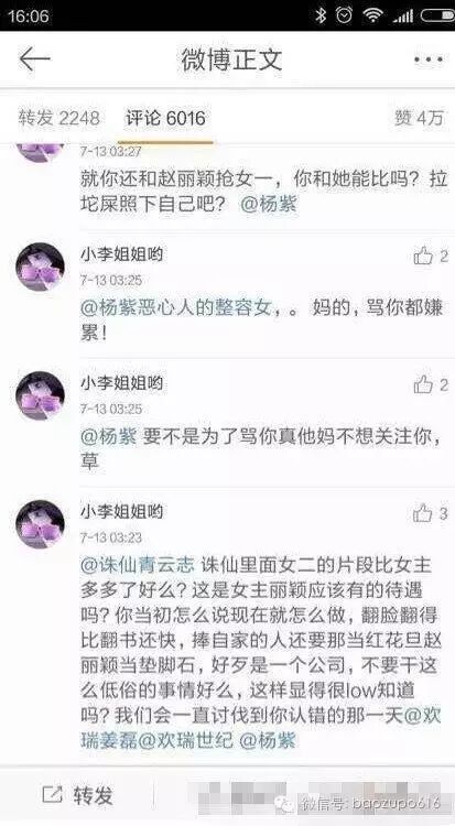 或许是因为不和的传闻,杨紫的微博有段时间充斥着谩骂和攻击