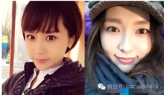 生活中的自拍,这个额头也是rio抢镜,和比她大15岁的刘涛相比,也很不自然