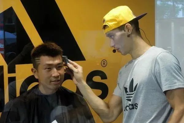 还帮现场一名幸运观众,搞了一个和他一摸一样的发型~