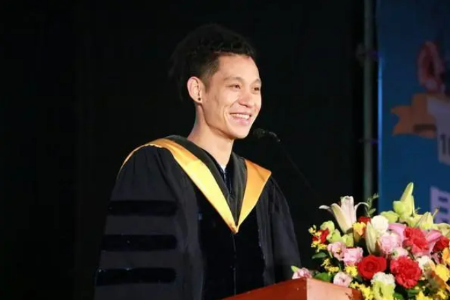 此时的林书豪,顶着一张稚嫩的帅脸,在哈佛毕业典礼上大笑: