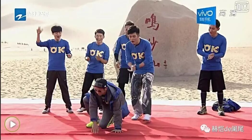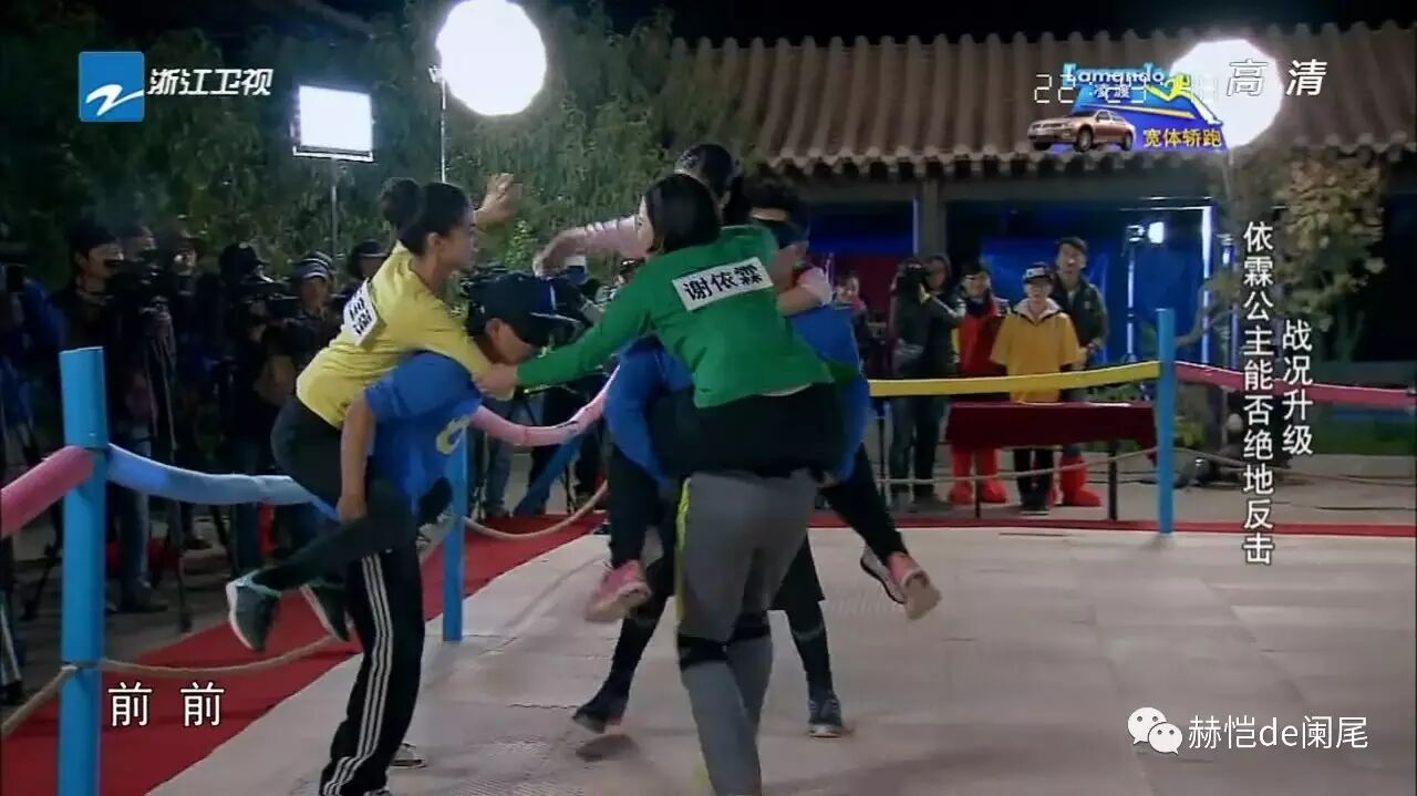 已经忍不住跑上了擂台欢呼的陈小赫(姿势动作正是郑小恺创出的美人计姿势):终于解脱啦!再也不玩这个把人当牲口的游戏了!