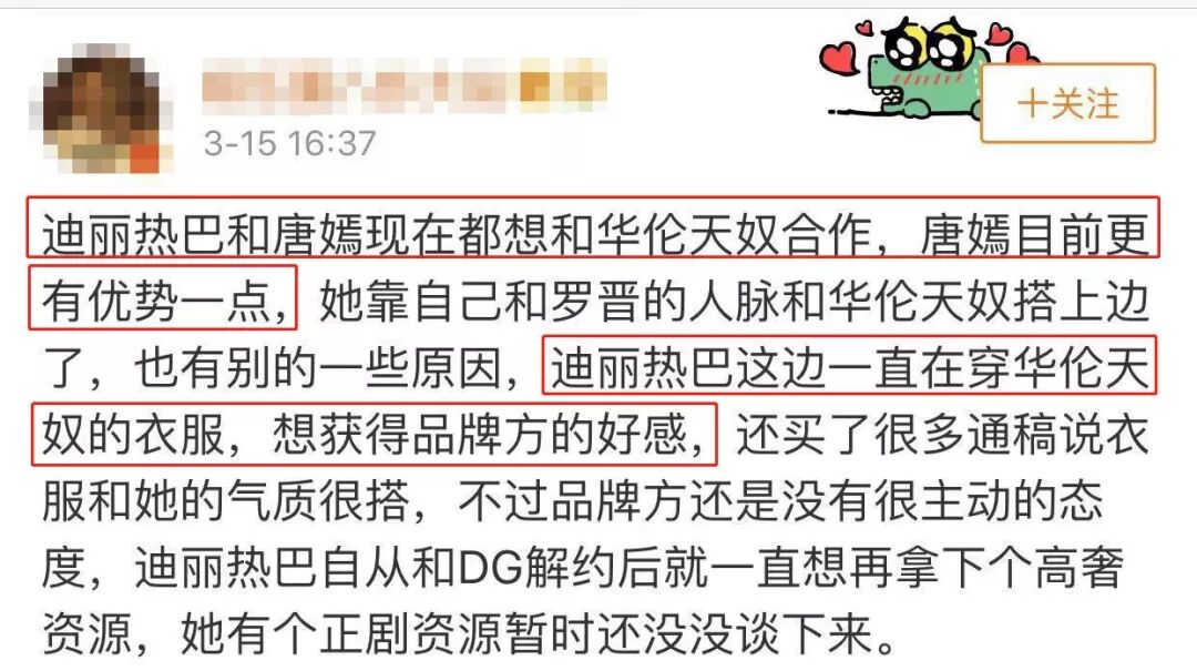 网曝迪丽热巴和唐嫣现在都想和华伦天奴(Valentino)合作,都在争取这个机会。