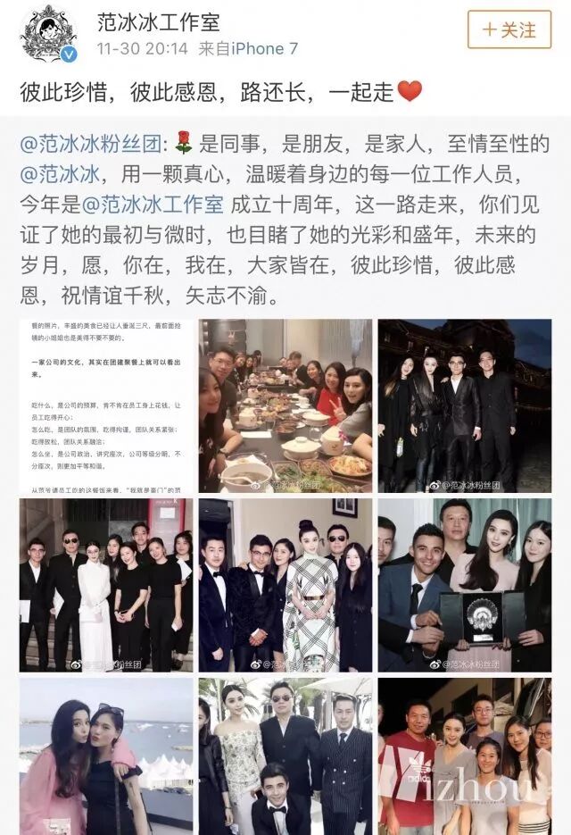 前段时间,范冰冰工作室发了这样一条微博: