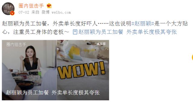 这不前几天说,赵丽颖为员工加餐,外卖单的长度那叫一个亮眼~
