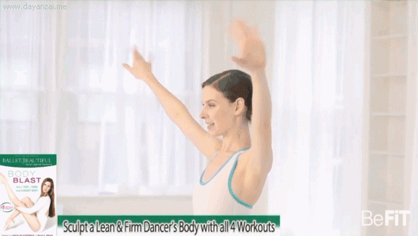 step3:双臂加大力度,向两侧尽力伸展开,记得收腹。