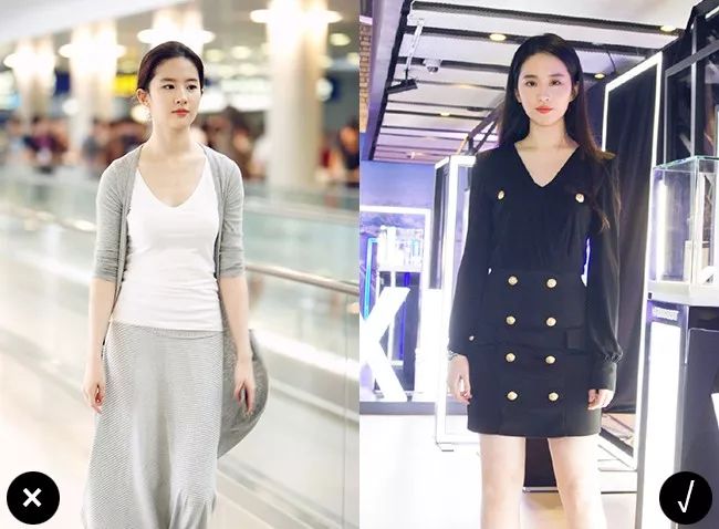诸如西装此类剪裁好、较为硬挺质地的单品,相对雪纺而言藏肉还显瘦。