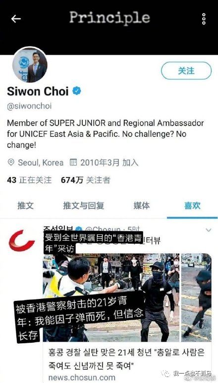 昨天上午一条#崔始源回应点赞#被顶上热搜,疑惑中点开看才知道,原来昨天晚上他在推特上点赞了朝鲜日报(韩国媒体)一条关于香港暴徒的新闻。