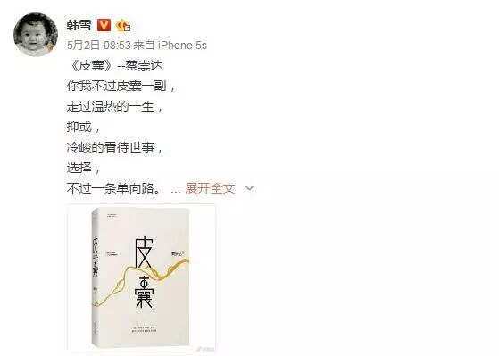 于是带着好奇心逛了一圈韩雪的微博,不禁感慨,一个人原来可以活得很立体,简直就是十项全能。