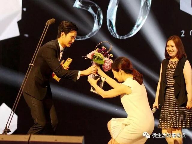 除去杜海涛以外,另有一个人向韩国明星下跪,她就是陶晶莹,在一次韩国的颁奖典礼中,陶晶莹居然单膝下跪为金秀贤颁奖,因而网友们对她的好感全无,都说她把国度的脸都丢到国外去了。