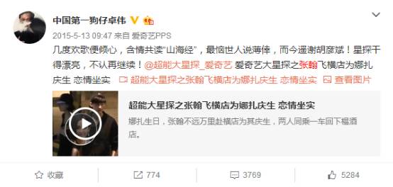去年5月份,卓伟通过微博曝光张翰与古力娜扎的恋情。真是棒棒的呢~虽然俩人之间的爱情,面对了很多冷嘲热讽,但不管怎么说也是一段可以走在阳光下的感情了。还得感谢卓叔,让他们大胆的去相爱。