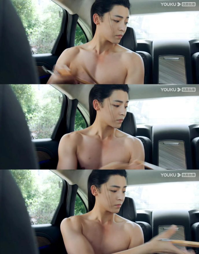 在进家门之前怕被父亲骂,当车换衣服,导演也是很会啊,知道美女们想看啥,这不科学!脸长得那么秀气,换衣服空当化身金刚芭比,有胸肌他是真秀啊!