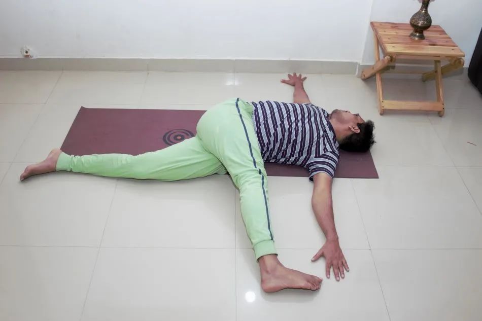 做法:仰卧,弯曲膝盖,使它们靠近身体,将手臂放在你的胫骨上,双手合十,将膝盖压在你的胸部。试着把膝盖往下拉一点。吸气并抬起头将其埋在膝盖之间,然后呼气,屏住呼吸 4-5 次,然后放松姿势。重复这个体式大约 10 次。