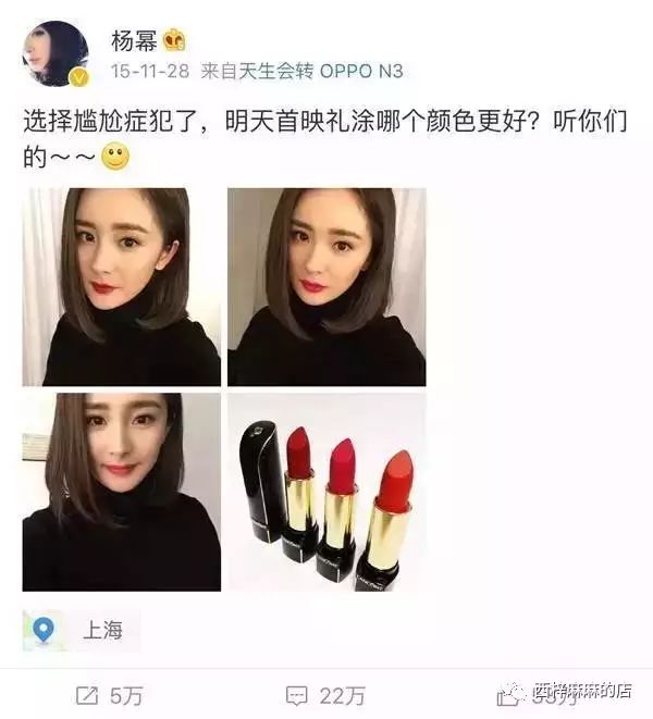 要说2016年的带货女王,大幂幂如果是第二谁还敢说第一?不止是时尚服装,彩妆也是一把好手呢,微博上曾经把兰蔻三支口红色号对比,让粉丝投票给意见。