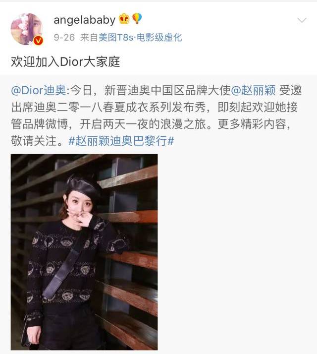 作为前大使angelababy也转发官宣微博,说欢迎加入Dior大家庭。有人嫌她语气太官方,连个表情包都没有。额……