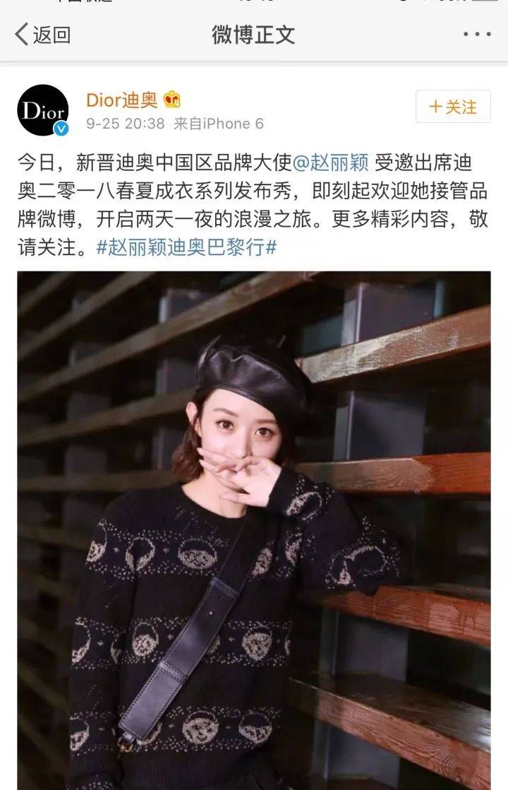 比如前段时间Dior就宣布了自己的新大使赵丽颖。